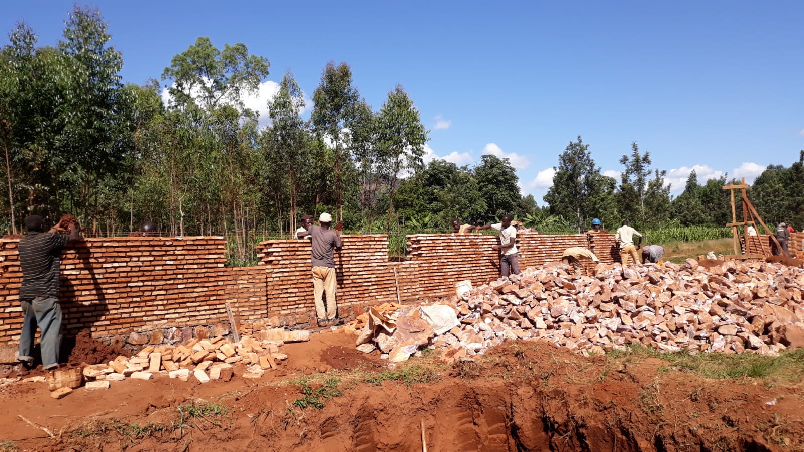 Wspólnie z Dobroczyńcami przystępujemy do rozbudowy szkoły podstawowej w Gitega-Songa, w Burundi. Gromadzimy kamienie, piasek, żwir i cegły. Wszystko wykonane ręcznie, bo nie ma żadnych maszyn. Ze względu na miękkie i sypkie podłoże, konieczne jest wykonanie mocnych i głębokich fundamentów.