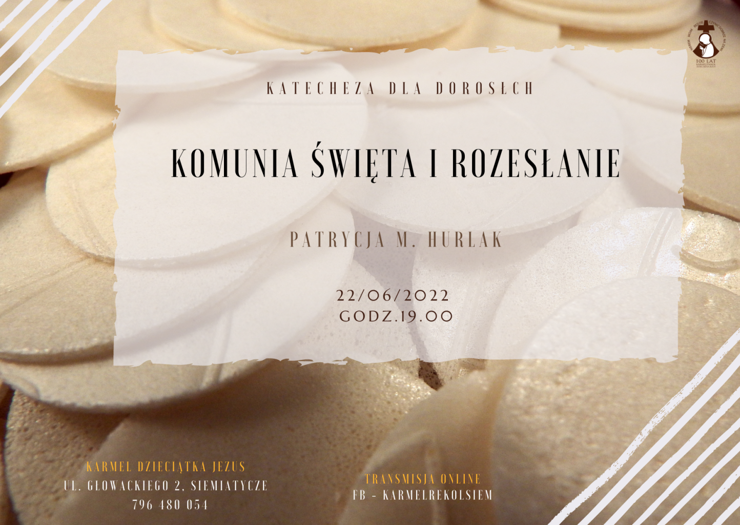 Już w najbliższą środę, 22 czerwca o godz. 19.00, Patrycja M. Hurlak opowie nam o tym, co dzieje się podczas Eucharystii po Modlitwie Eucharystycznej oraz co ważnego dostajemy tuż przed wyjściem z kościoła.